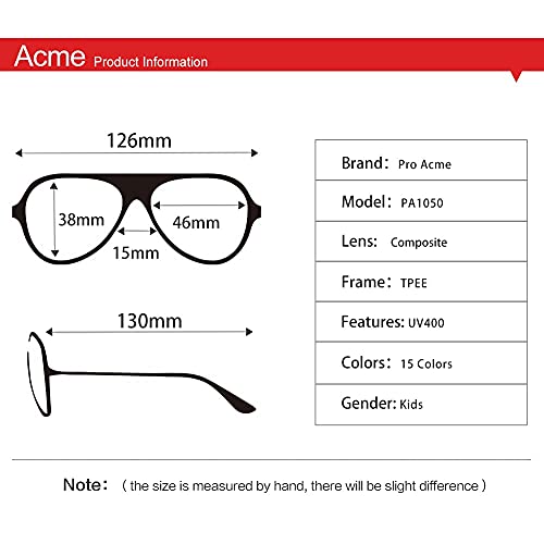 • Classic Aviator Style - Pro Acme children’s sunglasses aviator style combines exquisite and practical aviator sunglasses design, combining new material technology and popular elements, starting from both materials and design, upgrading and improving the classic aviator sunglasses, allowing classic and innovation to coexist and reproduce Aviator sunglasses are constantly pursuing the great spirit of ideals.