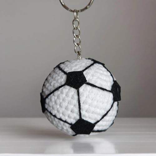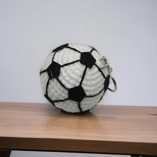 • Handcrafted Crochet Design: This adorable keychain features a crocheted soccer ball design, skillfully handmade with soft yarn.