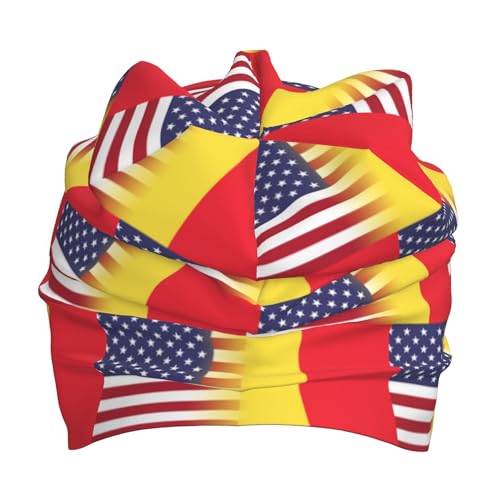 American Flag and Belgian Flag Kids Leisure Elastic Knitted Hat Junior Large Size Knit Cap Child Beanie Black 1