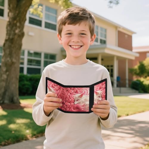 Kids Stylish Prints Trifold Wallet Teens Boys Girls Coin Case Lightweight Card Holder Moneybag Organizer,Pink Cherry Blossom and Fox 1