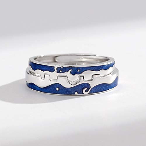 HOT ! 2 pairs S925 Sterling Silver Rings Van Gogh's Sky Design Handmade Unique Blue Open Band Ring Promise Ring Size 5-9.5 Jewelry Gift for Women-Adjustable Size
