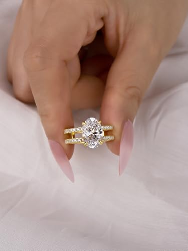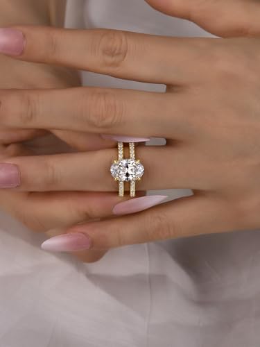 3.5CT 5A Grade Oval Cut Cubic Zirconia Double Band Engagement Ring for Women, 18K Yellow Gold Plated Sterling Silver Promise Ring 4