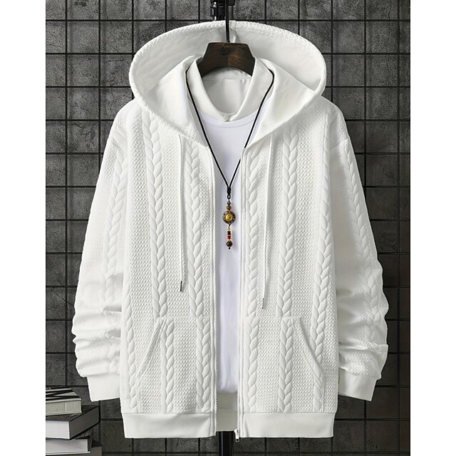 More information about Men's Hoodie Full Zip Hoodie Black White Hooded Plain Jacquard Pocket Ribbed Textured Sports & Outdoor Daily Holiday Polyester Streetwear Basic Casual Spring Fall Clothing Apparel Hoodies Sweatshirts