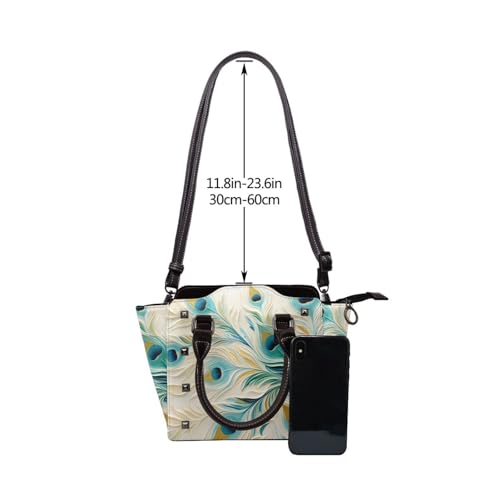 Leather Shoulder Bag for Women, Peacock Feathers Studded Purse Bohemian Crossbody Handbags Punk Hobo Bag with Adjustable Strap 1