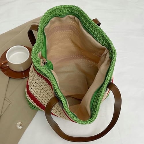 Summer Straw Shoulder Bags for Women Large Straw Beach Bag Color Strip Woven Tote Bags Handbag Woven Tote Bag Purse 2025 5