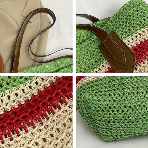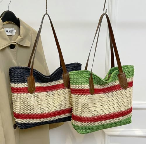 More information about Summer Straw Shoulder Bags for Women Large Straw Beach Bag Color Strip Woven Tote Bags Handbag Woven Tote Bag Purse 2025