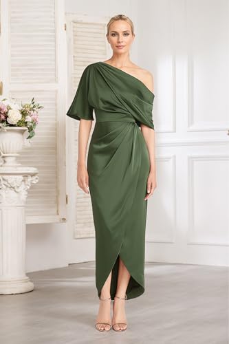• Feature:This one shoulder mother of the bride dress is made from high quality soft satin.Featuring an asymmetric, ruched, slit, tea length and mermaid design, it perfectly accentuates your natural curves while adding a touch of elegance.Wearing it will surely make you shine at events.built in bra, lace up back.