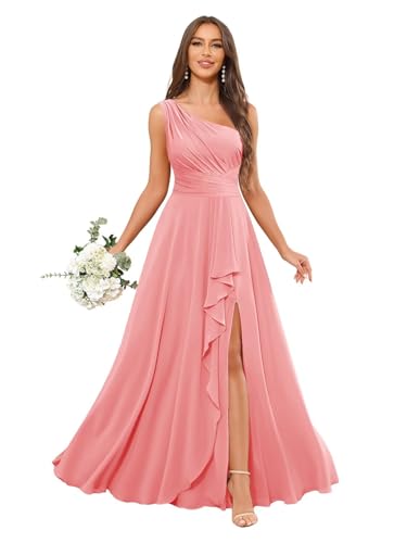 HOT ! One Shoulder Bridesmaid Dresses for Women with Slit Long Chiffon Pleated A Line Formal Evening Dress