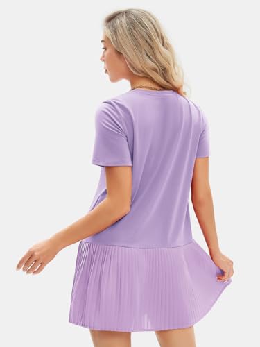 HOT ! EXLURA Womens Summer Casual Short Sleeve Dress Crewneck Tshirt Dresses Pleated Aline Mini Dress 2025 Vacation Beach Sundress