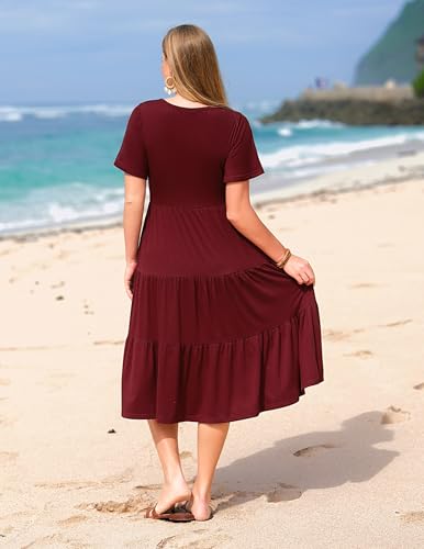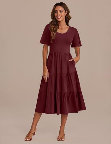 • 【Features】: This summer dress for women 2025 features a flutter short sleeve, crewneck, floral printed/solid color, flattering elastic empire waist, 2 side pockets, midi length and the tiered hemline make it look more pretty and cute.Loose fit dress, if you prefer a fitted style please size down.