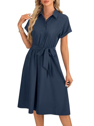 • Regular fit , above knee length. Ruffle hem A line flare midi dress feature with self tie, roll up sleeve, button front and plain color, make you more beautiful, fashion and elegant.