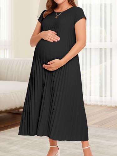 More information about Women's Church Pleated Maxi Dress 2025 Summer Cap Sleeve Maternity Modest Flowy Dresses with Pockets