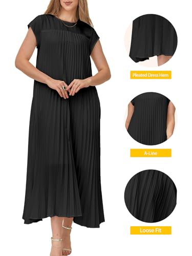 HOT ! Women's Church Pleated Maxi Dress 2025 Summer Cap Sleeve Maternity Modest Flowy Dresses with Pockets