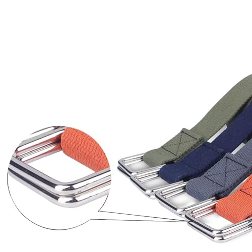 • [Adjustable]: Featuring Double Ring Buckle. Unlike the belts with pounched holes, the canvas belt is adjustable to the perfect fit with the double ring buckle, tight or loose it as you want, without worrying about too loose or too light, and avioding trouble about punching a hole in the belt.