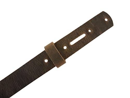 Brown Belt Strap, Buffalo Leather Belt Replacement 50-60 Length, 8-10 oz Thick Crazy Horse Buffalo Leather Belt Blank, Pre-Punched Holes and Turn Back Just Add Hardware (1-3/4") 3