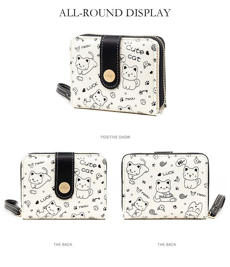 • Material: This kawaii cat wallet is made of high quality PU leather, smooth zipper and detailed streamlined stitching.