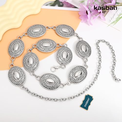 KASBAH Women Western Concho Belts For Dresses Jeans Cowgirl Waist Chain Belt Adjustable Metal Concho Country Belt 6