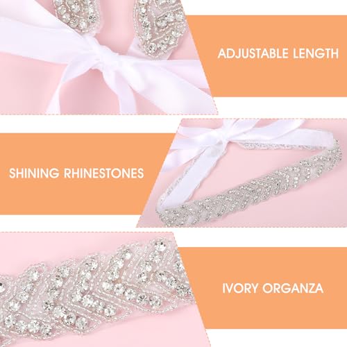 Ouligay Wedding Dress Belt Silver Sparkly Bridal Rhinestone Belts for Women Elegant Rhinestone Bridal Belt for Wedding Dress Adjustable Crystal Dress Belts for Women 2