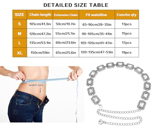 Western Square Waist Chain for Women Metal Chain Link Belt Adjustable Waist Chain Chunky Cowgirl Boho Chain Belts 3