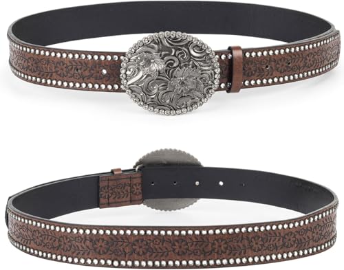 HOT ! UTOWO Womens-Western-Belt Rhinestone-Cowgirl-Cowboy Belt - Embossed Flower PU-Leather Belt with Diamond Buckle(for 28-38")