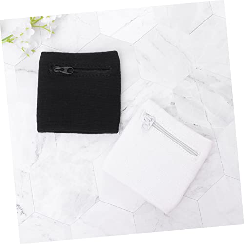 2Pcs Portable Wristband Bag with Zipper Pouch for Keys and Coins Lightweight Change Holder for Running and Outdoor Sports White Black 1
