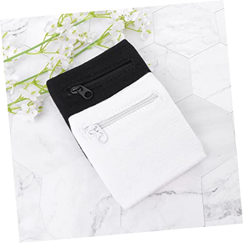 HOT ! 2Pcs Portable Wristband Bag with Zipper Pouch for Keys and Coins Lightweight Change Holder for Running and Outdoor Sports White Black