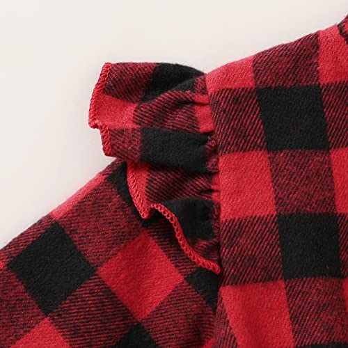 Toddler Kids Girls Clothes Christmas Dress Ruffle Red Plaid Black Mesh Skirt Outfits Overall Fall Winter 6