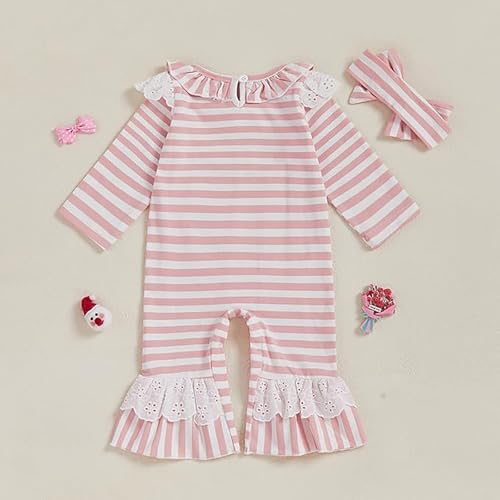 My First Christmas Baby Girl Outfit Newborn Baby Santa Flared Romper Stripe One Piece Jumpsuit Infant Girl Clothes 4