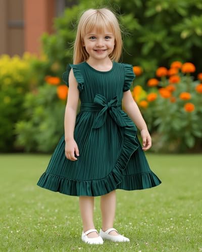 • Design: This kids'dress features a flowy ruffled hemline with adjustable waist straps, perfect for growing toddlers. And easy slip-on round neckline design for quick outfit changes.