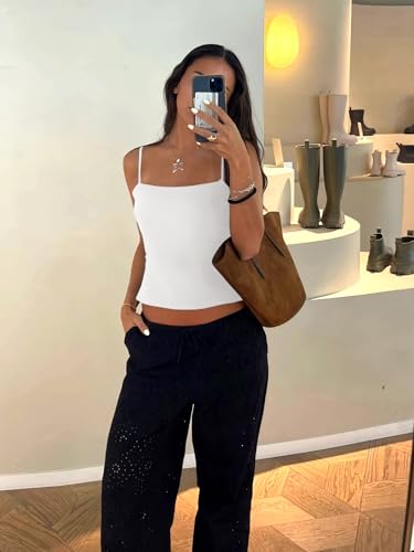 • 【VERSATILE WARDROBE STAPLE】 Designed with adjustable spaghetti straps and a slim silhouette, this cami transitions effortlessly from loungewear to streetwear. Pair it under blazers, cardigans, or jackets, or wear it solo with jeans or skirts for a minimalist chic look.