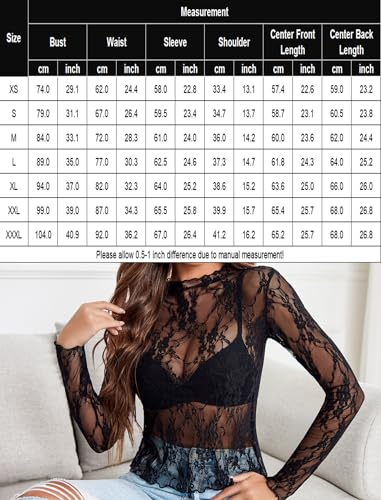 Avidlove Women's Mesh Top Long Sleeve Mock Neck Sheer Blouse See Through Floral Lace Tops 5