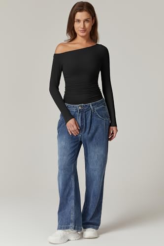 • FEATURE:The top for that all day, everyday kind of cool with an off the shoulder style to show just the right amount of skin,features an asymmetric neckline, off shoulder,ruched fabric, long sleeves and ultra soft, stretch fabric with a snug fit. Pair with your go-to bottoms and a mini bag.