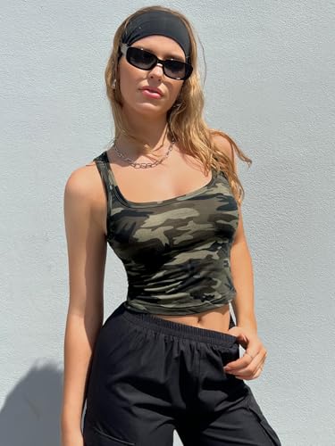SOLY HUX Women's Square Neck Tank Top Sleeveless Slim Fit Shirts Camo Vest Tops 6