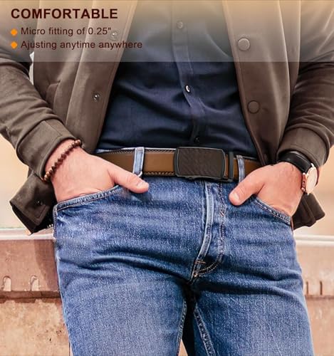 • [Durable Leather Construction] This men's belt is made from durable leather, ensuring long-lasting use and a high-quality finish. The leather is both strong and flexible, making it comfortable to wear all day. The sliding ratchet buckle ensures a perfect fit every time.