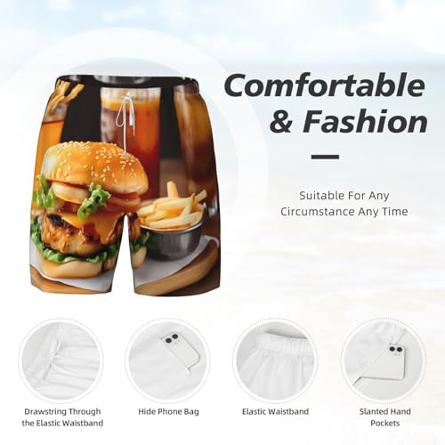 Chicken Leg Burger Drink Men's Soft Double Swim Shorts, Lounge Swiming Shorts Pants Breathable Summer 7