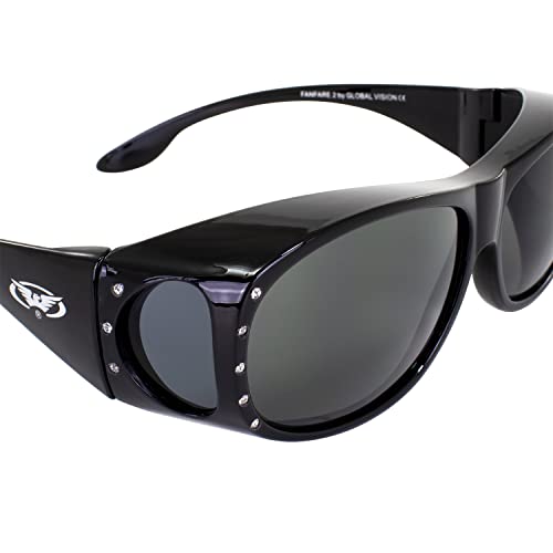 Global Vision Eyewear Fanfare 2 Sunglasses, Smoke Lens, Fits Over Glasses 2