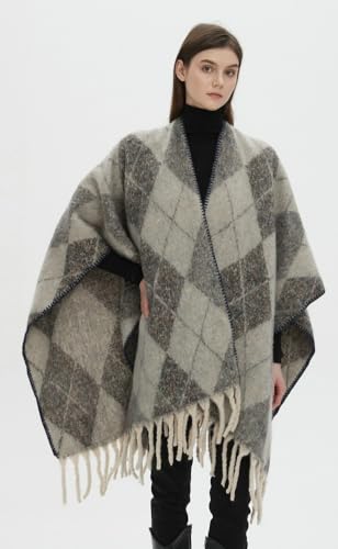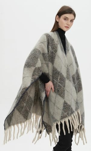 More information about Women's Mohair Shawl Wraps Open Front Plaid Tassel Poncho Oversized Knitted Sweater Cardigan Shawls for Fall Winter