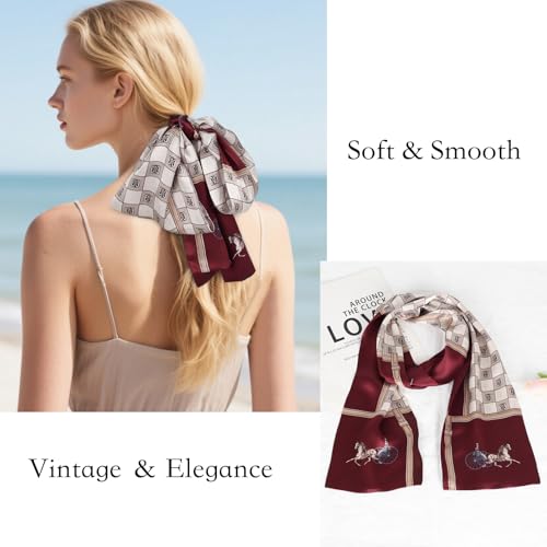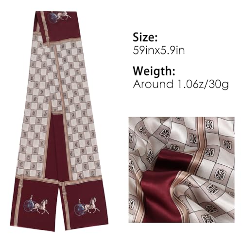 • 【Elegant & Versatile Size】This is a perfect sized scarf, measuring 5.9 x 57 inches, suitable for tying around the neck and can enhance the lines of the neck, making the overall look more delicate.