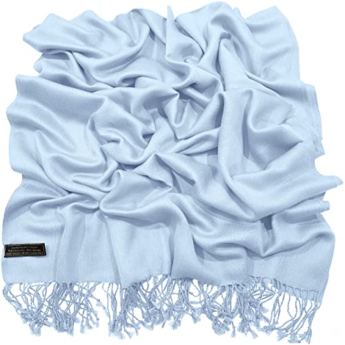 CJ Apparel Light Blue Baby Blue Solid Color Tassels Design Nepalese Shawl Seconds Scarf Wrap Stole Throw Head Wrap Pashmina Hand Made in Nepal New 2