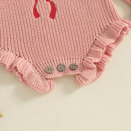 Baby Girl Fall Outfit Newborn Romper Knit Sweater She's Here Embroidery Long Sleeve Ruffle Bodysuit Sweatshirt 0-12M 6