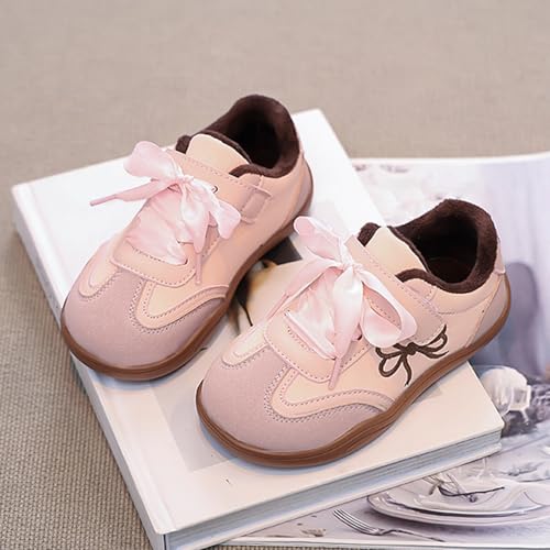 Girls Bow Lace Sneakers Fuzzy Lined Ankle Running Sport Shoes Kids Fall Winter Warm Flat Non Slip Thick Casual Shoes 7
