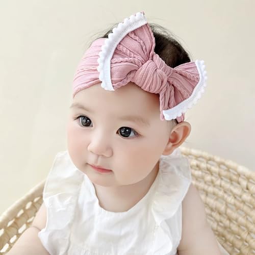 Soft Stretchy Nylon Bows Headbands for Baby Girls Bow-knot Turban Head Wrap Elastic Wide Hair Accessories for Newborn Infant Toddlers Kids (Pink A, Elastic) 5