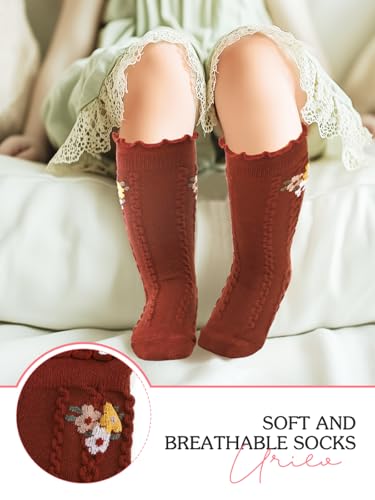 Urieo Baby Girls Knee High Socks Cotton Ruffle Sock Flower Long Stockings for Infants Toddlers Kids Girls 4