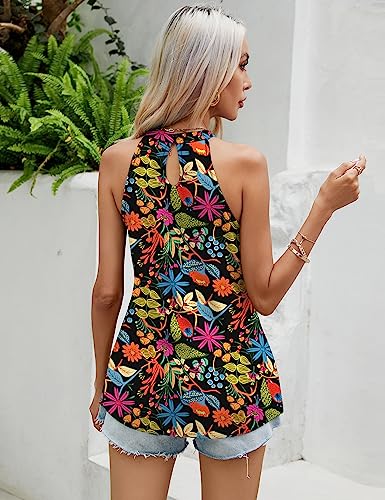 • ❤️【Features】 Loose fit halter tank tops, cute sleeveless top, flowy pleated front summer tops, soft crew high neck shirts, back pearl button design (And One extra pearl button for spare).