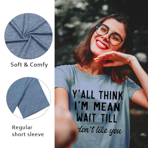 More information about Women Y'all Think I'm Mean Wait Till I Don't Like You Funny Graphic Saying Shirt Short Sleeves Comfy Novelty Casual Clothes