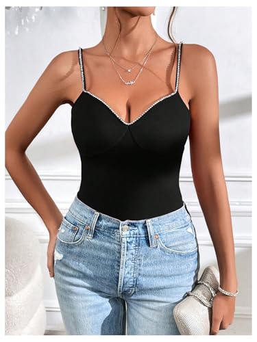 SOLY HUX Women's Rhinestone Cami Top V Neck Spaghetti Strap Slim Fit Camisole Summer Tops 3