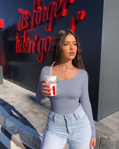 OQQ Women Tops Scoop Neck Long Sleeve Fitting Stretch Clothes Basic Cami Shirts 6