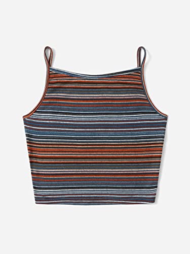 COZYEASE Women's Striped Print Tank Top Vest Slim Fitted Spaghetti Strap Sleeveless Casual Crop Top 1
