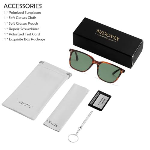 • ★ MATERIAL CHARACTERISTICS - These NIDOVIX retro polarized square sunglasses have multiple functions and powerful qualities, the frame is made of acetate fiber, and are comfortable to wear. There are also metal hinges and integrated nose pads, so you will feel no pressure on your nose.