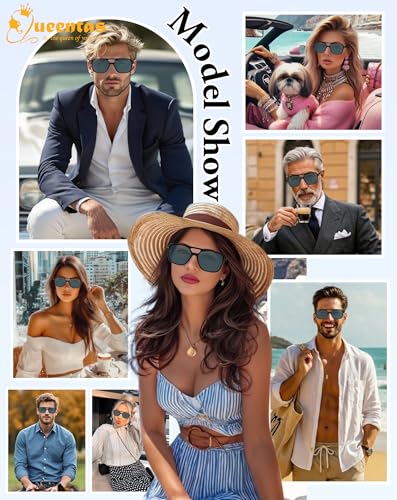 Men's Sunglasses for Women Polarized Square Fashion Double Bridge Driving Sun Glasses 7